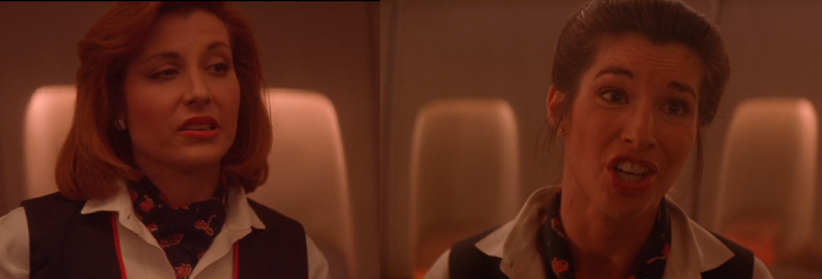 3. The Salty Stewardesses (Sherry Bilsing, Karla Tamburrelli, Felicity Waterman, and Amanda Hillwood). I love a Viper Den like this one even more than vigilante justice, and I knew I would enjoy Sherry Bilsing’s performance the moment that Thornburg told her he had a restraining order on Holly McClane (Bonnie Bedelia). She walked over and asked conspiratorially, “What did you do?” When Holly McClane explains she knocked his teeth out, Salty Stewardess #1 asks, “Would you like some champagne?”